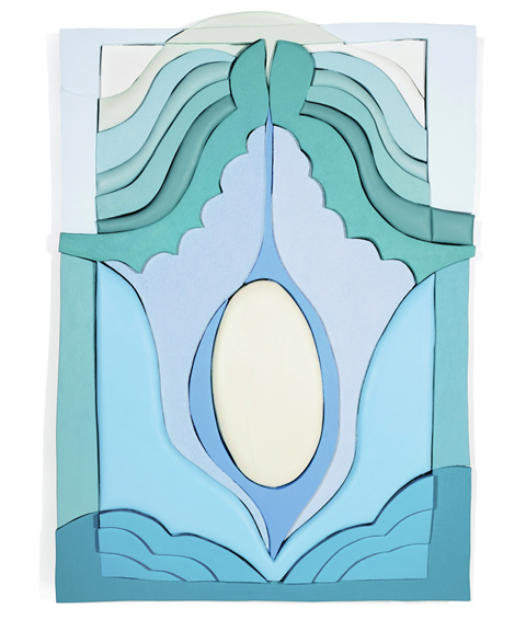 At Hollis Taggart’s booth, Leah Guadagnoli’s lusciously architectural and jubilantly pastel painting and sculpture hybrids yearn for a touch — however, do not. The artist constructs her canvas-based works by putting the modern art’s favorite material into highly physical affairs with other materials, most of which have industrial purposes, such as foam, stone, or aluminum. Their upholstered — and therefore unapologetically decorative — veneers are complimented with a color palette that spans dusty tones of pink, blue, or green. Guadagnoli’s abstract shapes are serpentine, sharp, and seductive, balancing soft edges with pointy corners, with cues from everyday design and social constructs on masculine and feminine behavior.